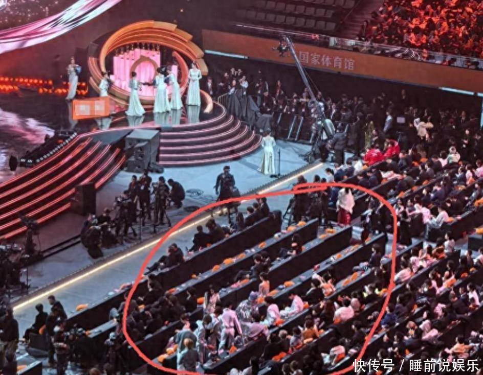 按常理来讲,能坐在第二三排的明星,在娱乐圈的地位肯定不一般,但座位突然被调换,很多明星感觉没受到尊重,便都选择不坐,拒绝入席。从现场视频能明显看出,杨幂上去领奖那会儿,明星坐的区域里几乎都没人坐着。